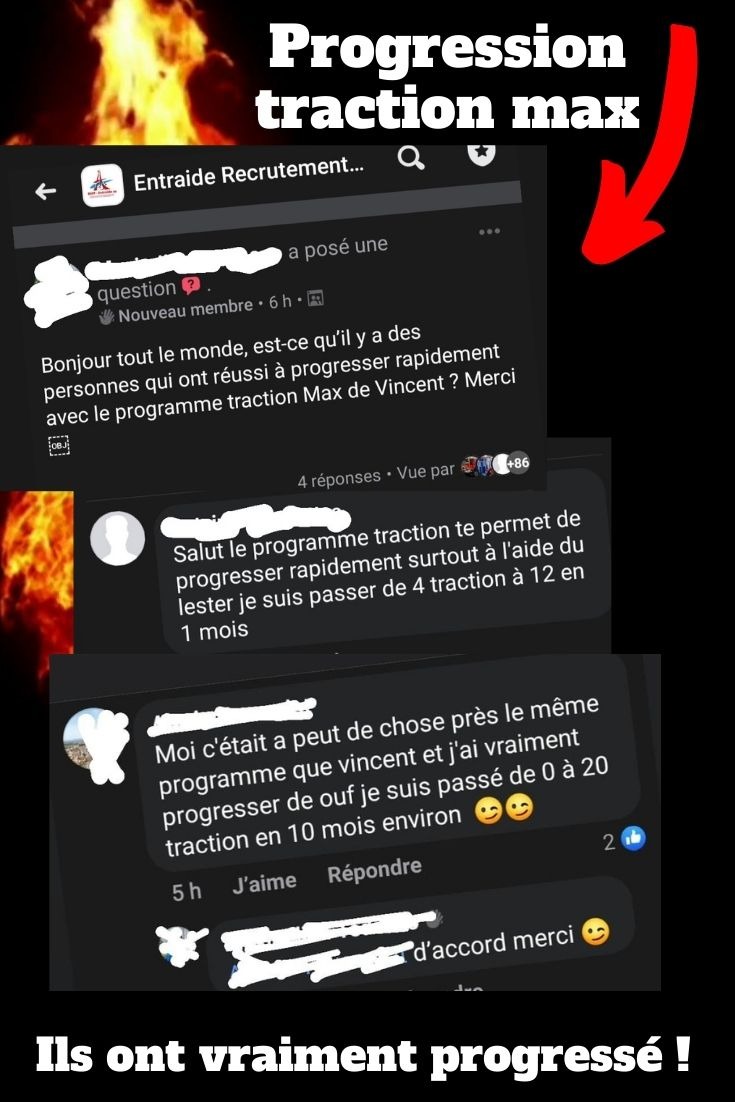 Voici un retour direct du groupe privé de la formation 🔥🔥 : Grâce aux programmes Tractions Max, mes élèves ont réalisé une progression impressionnante ! 💪🏅
