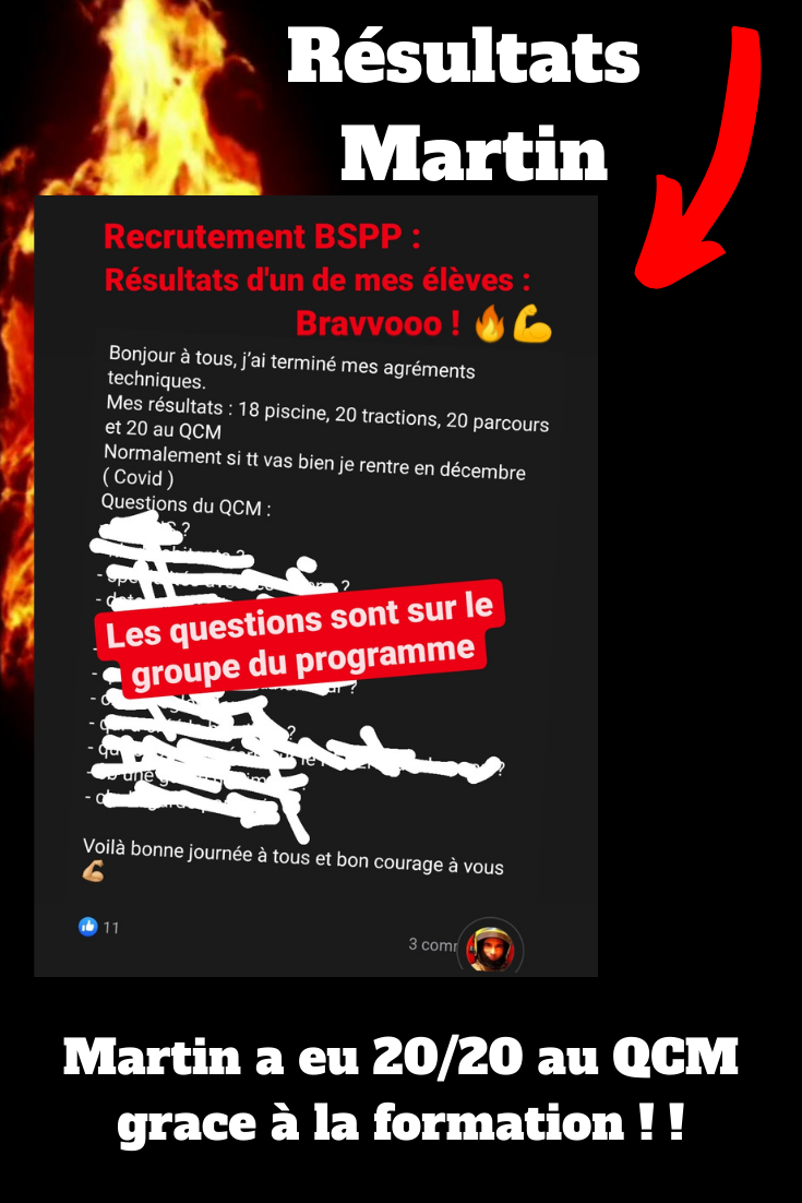 Grâce au groupe privé d'entraide, tu pourras échanger avec des élèves qui ont suivi ce programme et qui ont déjà réussi les sélections de la BSPP. Profite de leurs conseils et de leur expérience pour te préparer au mieux.