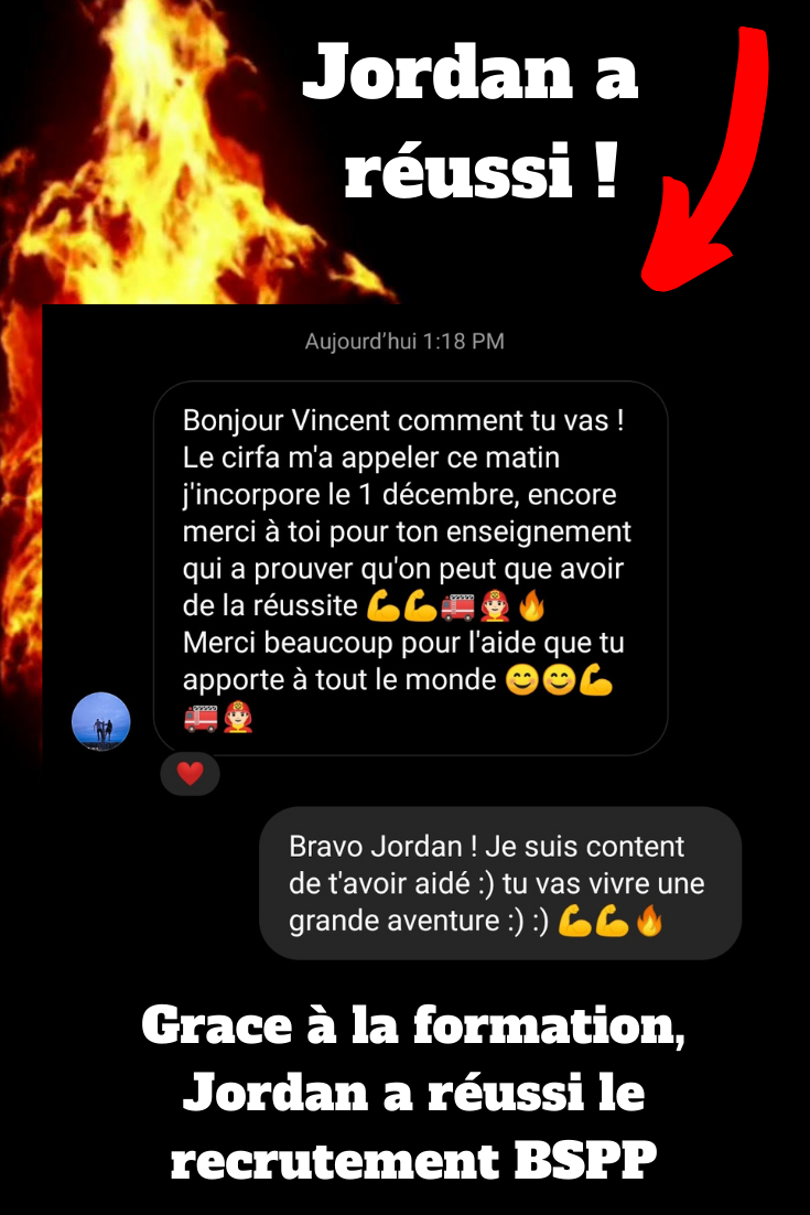 Grâce à la formation, Jordan entre le 1er décembre à la BSPP ! 🎉 Une préparation solide et un accompagnement efficace qui lui ont permis de franchir cette étape cruciale. 💪